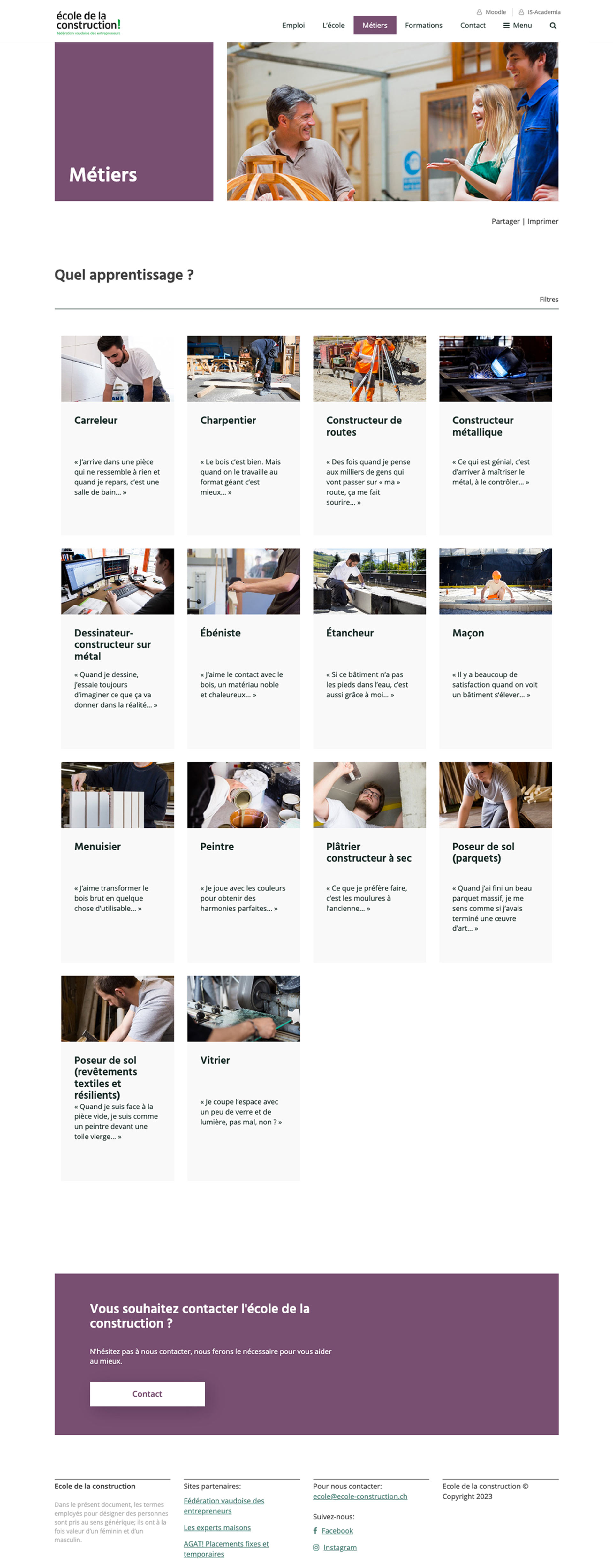 En plus du site de la Fédération, nous avons développé les sites de l’école de la construction, l’annuaire de la construction et le site dédié à la formation continue.