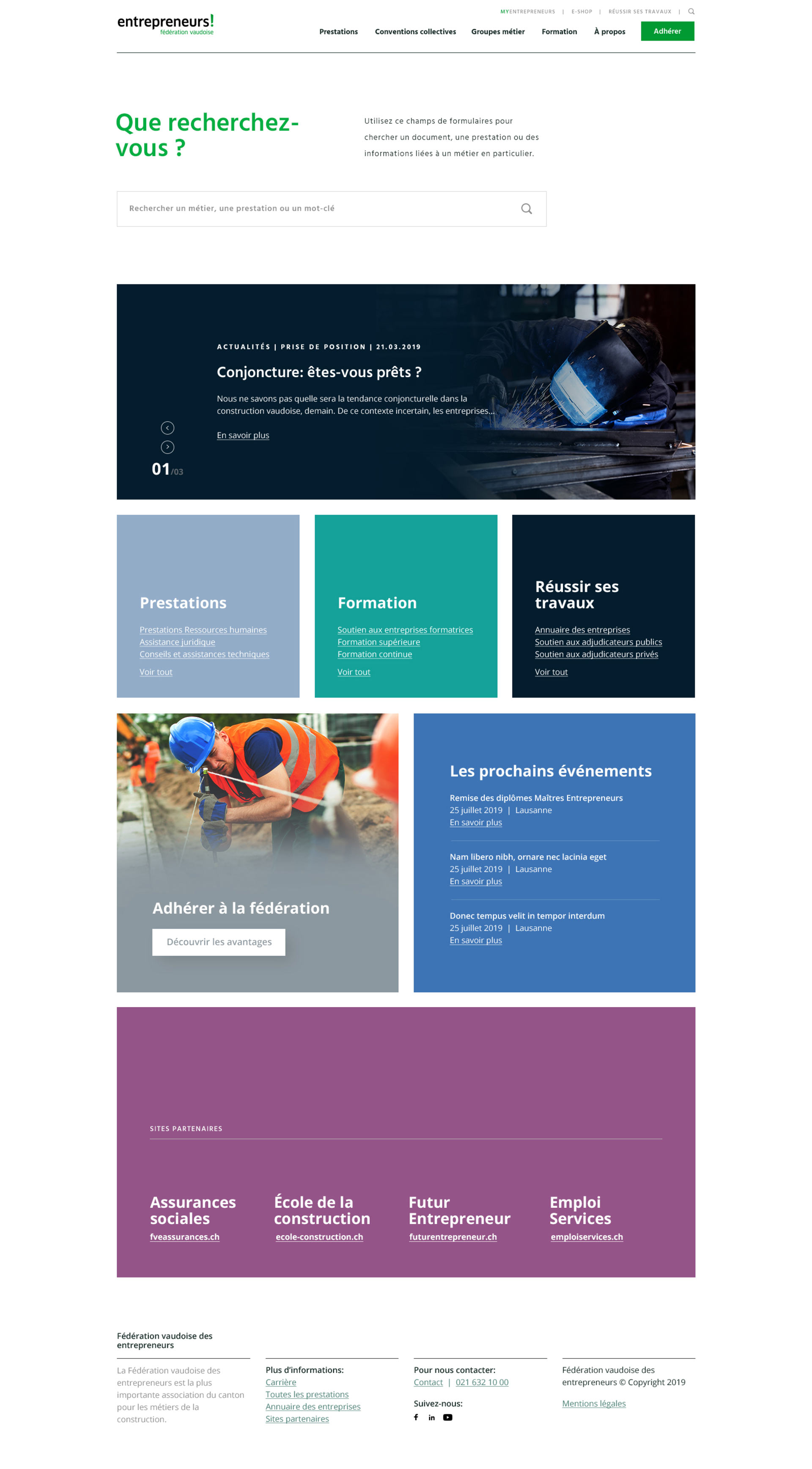 Navigation intuitive, design épuré, fonction de recherches performante: le site internet de la Fédération vaudoise des entrepreneurs a été pensé de façon à permettre aux utilisateurs de gagner un maximum de temps dans leurs recherches.