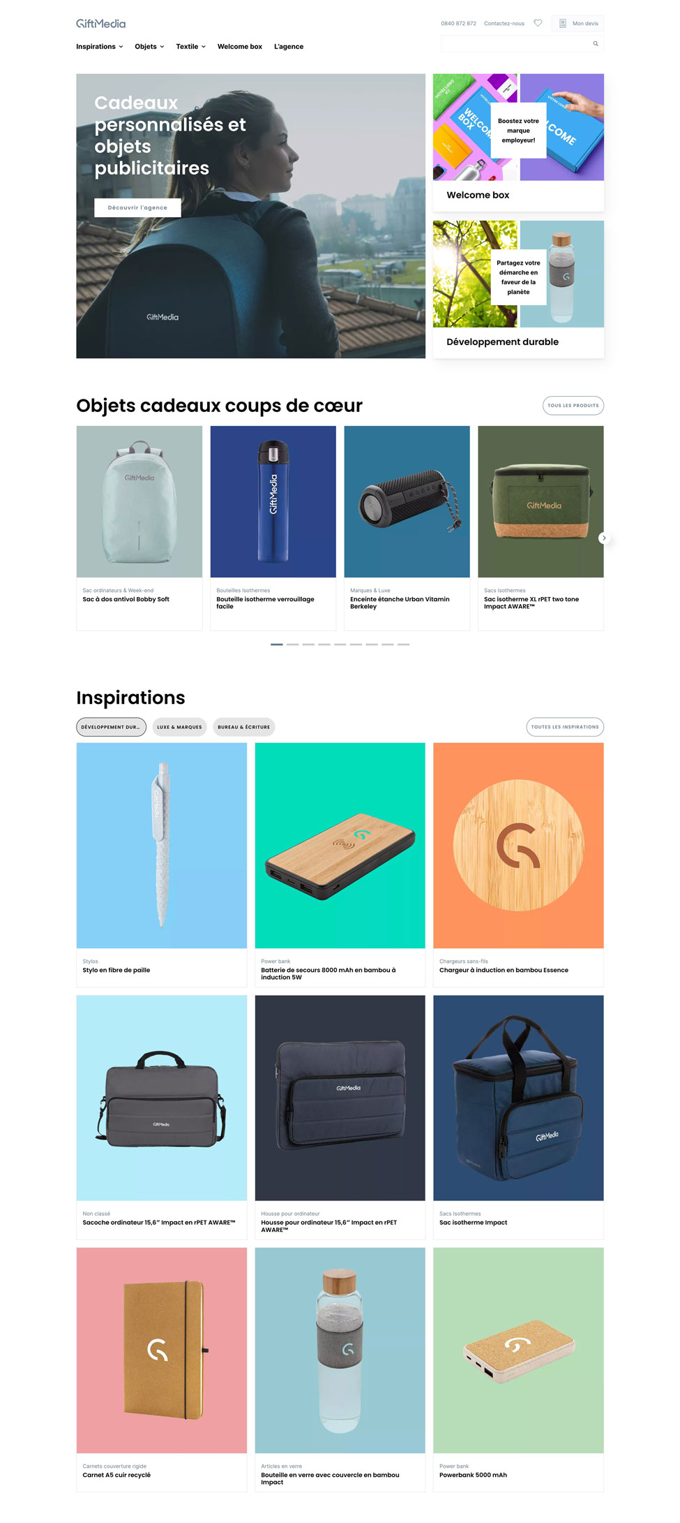 GiftMedia est une agence de communication par l’objet qui met un accent aigu sur le mot « qualité ». Pour le fondateur rien n’est plus décevant qu’un cadeau bon à jeter à sa première utilisation. Afin de refléter les valeurs de l’entreprise, nous avons offert un écrin particulier à chacun des produits dans une ligne graphique moderne, épurée et colorée.
